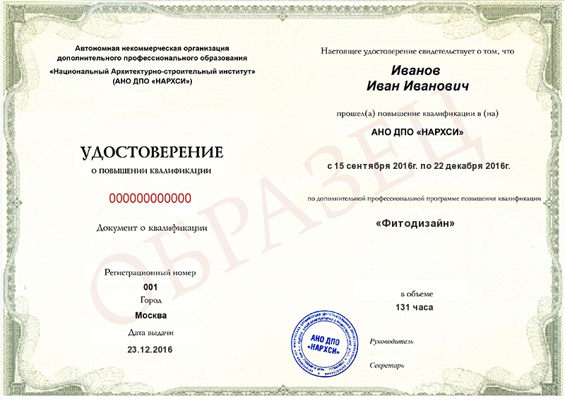 Каждый документ (диплом/удостоверение/свидетельство) соответствует п.2 ст.60 N-273 ФЗ. Диплом/удостоверение/свидетельство оформляется на русском языке, печатается на типографском бланке, защищённом от подделок. Ставится официальная печать образовательной организации. С образцами документов можно ознакомиться на сайте в разделе «Лицензия и документы».